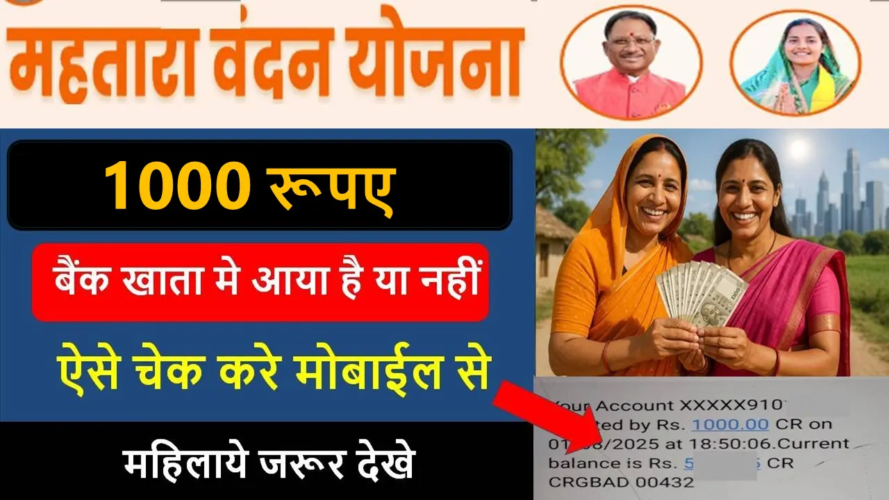 क्या आप भी एक महिला हैं और महतारी वंदन ₹1000 योजना का लाभ ले रही हैं? अगर हाँ, तो आज की यह जानकारी आपके लिए बहुत खास होने वाली है। क्योंकि बहुत सी महिलाएँ इस योजना के तहत हर महीने ₹1000 की लाभ ले रही है यानि उनके खाते में हर महीने सरकार की तरफ से महतारी वंदन योजना के तहत 1000 रूपए भेजा जाता हैं, लेकिन कई बार उन्हें यह समझ नहीं आता कि इस बार का पैसा उनके खाते में आया है या नहीं।